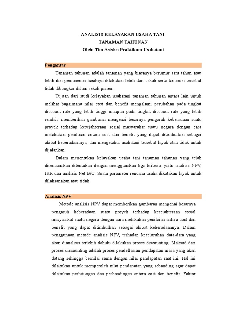 Analisis Kelayakan Usaha Tani Tanaman Tahunan Pdf
